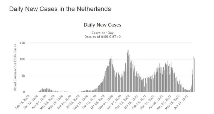 Раніше повідомлялося, що попри масовану вакцинацію в Нідерландах зафіксовано спалах Covid-19. Міністерство охорони здоров'я пов'язує новий спалах з поширенням штаму Covid-19 «Дельта». Цю мутацію вважають більш заразною та більш стійкою до вакцин. Крім того, у Нідерландах частіше інфікується молодь, яка менше вакцинована. Прем’єр-міністр країни Марк Рютте вже закликав співвітчизників утриматись від зібрань великими компаніями та дотримуватися дистанції.