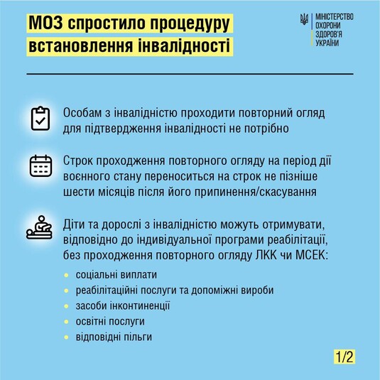 У відомстві зазначили, що для отримання соціальних виплат особам з інвалідністю відбувається повторний огляд для доказу інвалідності не потрібно.