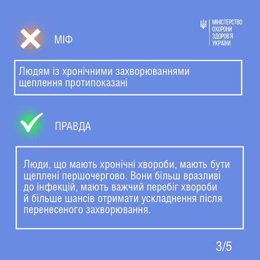 Міф 3. Людям із хронічними захворюваннями щеплення протипоказані