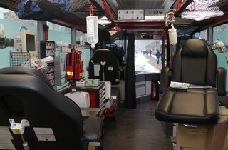 Зокрема, у цьому мобільному шпиталі можуть одночасно надати допомогу десятьом пораненим військовим. У салоні автобуса є два операційних крісла, п’ять реанімаційних місць, сім моніторів життєдіяльності, сім перфурзорів, коагулятор для зупинки кровотеч, відсмоктувач рідин, апарати УЗД та ШВЛ, стоматологічне крісло з відповідним обладнанням та потужний Wi-Fi для телемедицини. Персонал мобільного шпиталю буде складатися із трьох лікарів та медсестри. Для безперебійного живлення апаратури інженери обладнали його кабелем для стаціонарного живлення від мережі, а також інвертором, який при двигуні автобуса, що працює, перетворює напругу з 24В у 220В.