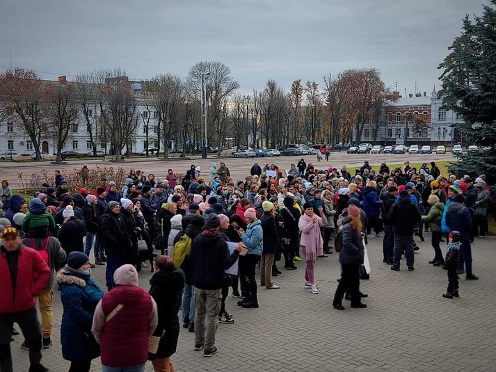 Близько двох сотень людей зібралися сьогодні, 3 листопада, на Майдані Незалежності у Хмельницькому на акцію протесту проти карантинних обмежень та примусової вакцинації.