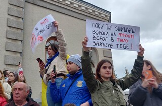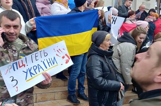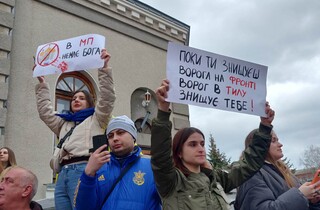 У Хмельницькому біля Свято-Покровського кафедрального собору, що належить до Московської церкви, зібралось кілька тисяч людей. Вони тримають в руках плакати із написом «РПЦ! Геть із України!», «Поки ти знищуєш ворога на фронті, ворог в тилу знищує тебе» та скандують «Геть московського попа!» , «Одна єдина Соборна Україна». Про це кореспондент «Главкому» повідомляє з місця подій.