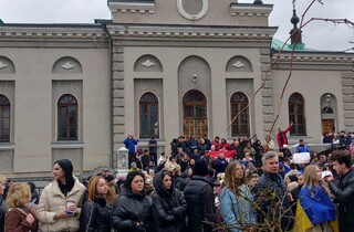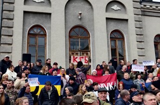 У Хмельницькому біля храму, де побили військового, зібрався багатотисячний мітинг