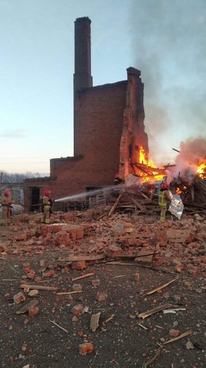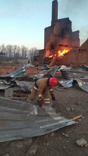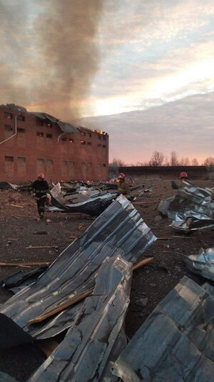 «О 08:26 19 березня в смт Народичі Коростенського району рятувальниками ліквідовано пожежу в будівлі зерноскладу приватного сільгосптовариства. Після нанесеного ворогом авіаудару будівля, де зберігалися зернові, зазнала руйнувань, зайнялися перекриття та покрівля на площі 500 кв.м. Загиблих та травмованих немає», – йдеться у повідомленні.