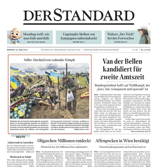 Австрія. Der Standard. Підпис під фото: «Тихе прощання, незважаючи на битви, що наближаються». Нацгвардійці України прощаються із загиблими солдатами на Харківському цвинтарі у неділю. Минулими вихідними також надходили повідомлення про російські атаки з цього міста. У Генштабі України говорили про «ракетно-авіаційні удари по всій території» та «підвищену інтенсивність боїв».