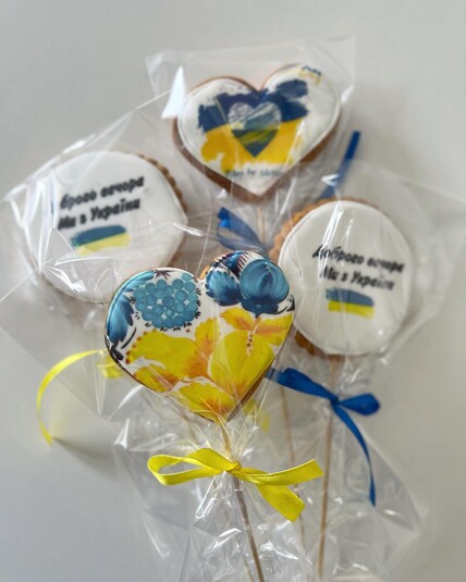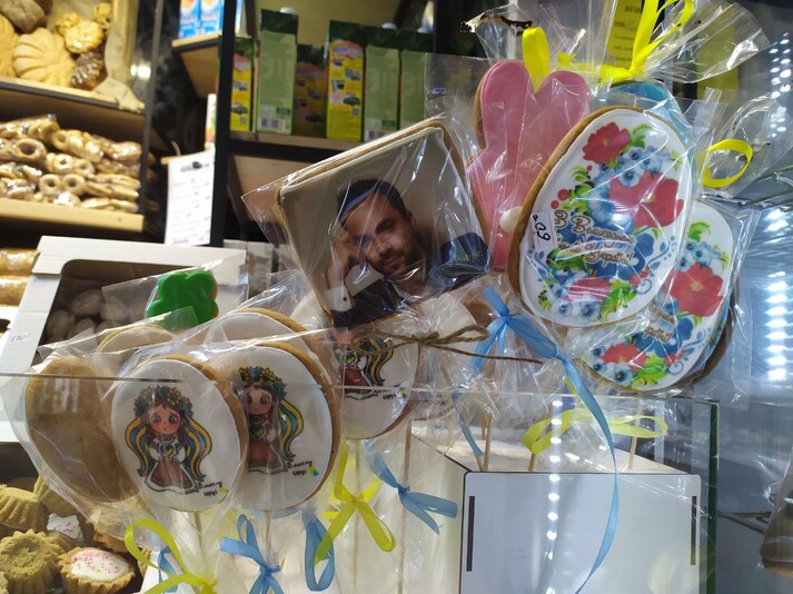 Виготовляє пекарня і пряники із зображенням знаменитої марки «Русскій воєнний корабль, іді ... !». Крім того, випікають жовто-блакитні смаколики із патріотичною символікою.