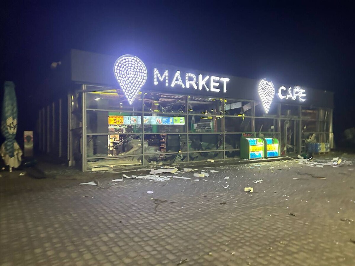 У Київському районі безпілотник вдарив по непрацюючій офісній будівлі, яка вже неодноразово піддавалась ворожим обстрілам. Ще один БпЛА поцілив у двоповерхове комерційне приміщення. Пошкоджено багатоквартирні будинки, аптеки, кафе, магазини тощо. Жінка зазнала гострої реакції на стрес. Чоловік та шестирічний хлопчик отримали поранення від скла, ще один чоловік вдарився головою під час вибуху. Правоохоронці також зафіксували удар безпілотника по АЗС. Трьом співробітникам надано медичну допомогу: їм діагностували гостру реакцію на стрес.