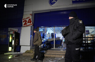 Видання опублікувало перші фотографії з місця влучання безпілотників РФ по середмістю Харкова ввечері 30 січня. Внаслідок ворожої атаки 86-річний дістав забої голови.