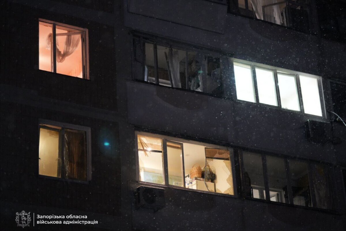 За повідомленням ДСНС, рятувальники працюють на місцях ворожої атаки у Запоріжжі, обстежують пошкоджені будівлі, допомагають постраждалим і ліквідовують наслідки удару. Зафіксовано пошкодження житлових багатоповерхівок, вибиті вікна та зруйновані балкони.