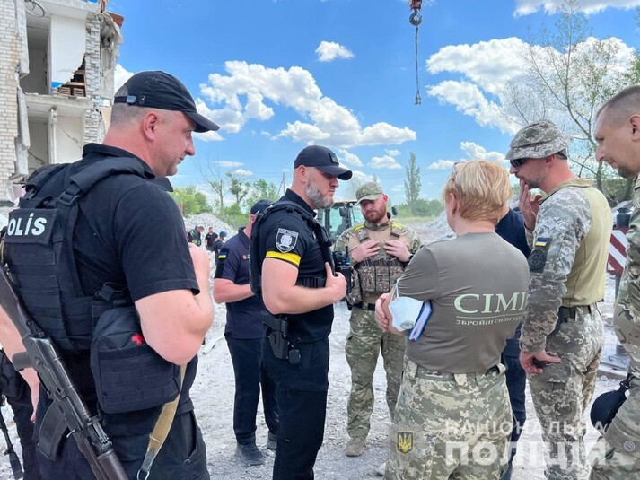 «Четверту добу тривають пошукові заходи в місті Часів Яр, де 9 липня військові армії РФ зруйнували п’ятиповерховий будинок. Ворог завдав три удари по об’єктах цивільної інфраструктури. Поліцейські всі ці дні цілодобово охороняють місце події, поки триває розбір завалів, а також здійснюють ідентифікацію тіл загиблих», – ідеться у повідомленні.