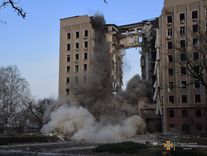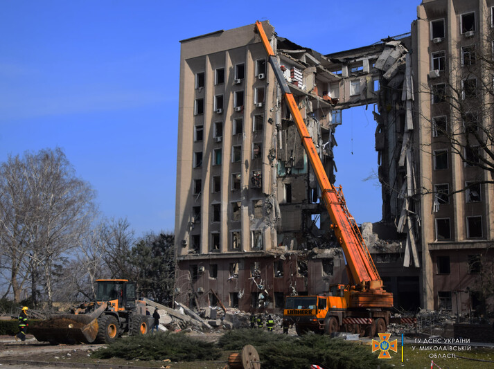 Нагадаємо, 29 березня близько 08:45 у м. Миколаїв внаслідок обстрілу та влучання в дев’ятиповерхову адміністративну будівлю, де розташована облдержадміністрація та обласна рада, сталося руйнування центральної секції будівлі.