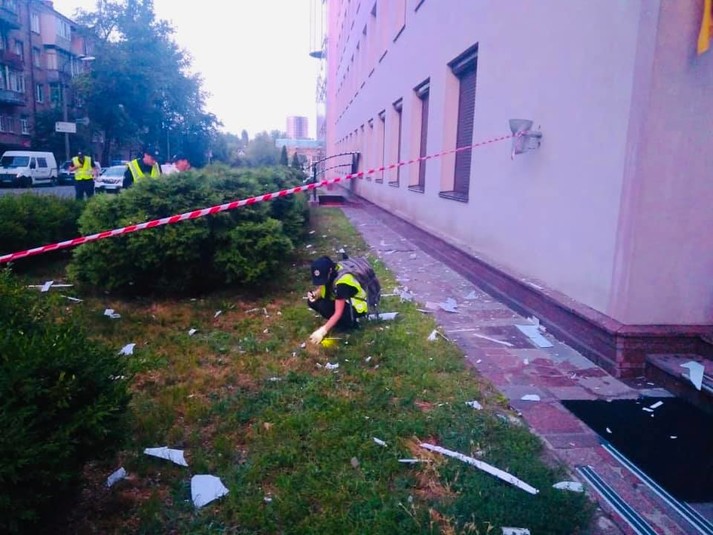Поліцейські на місці події виявили пошкоджений фасад будівлі і оточили територію, прилеглу до місця злочину. Під час відпрацювання знайшли відстріляний тубус гранатомета, що направлять на проведення експертизи.
