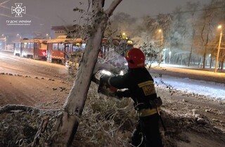 У південних та східних регіонах України через снігопади та сильні пориви вітру повалились дерева, в результаті чого пошкоджено лінії електропередач та ускладено проїзд окремими дорогами. Про це йдеться у повідомленні Державної служби з надзвичайних ситуацій.