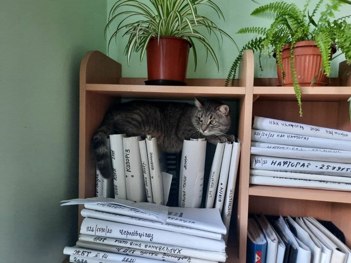 «Я повернувся до своїх кабінетів і почав більше ще цінувати моїх співжителів. Щоб якось віддячити, я часто підказую їм де знати потрібний документ та рятую їх від нервових зривів. А ще постійно просто віддаю їм тепло, як вони колись давали його мені маленькому», – «розповідає» котик.