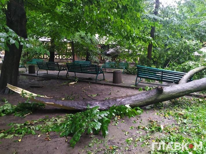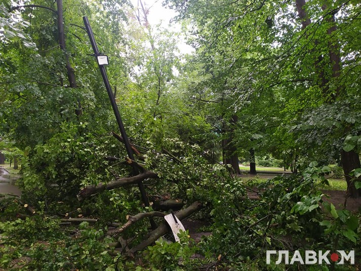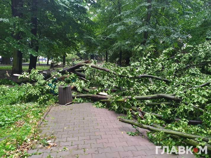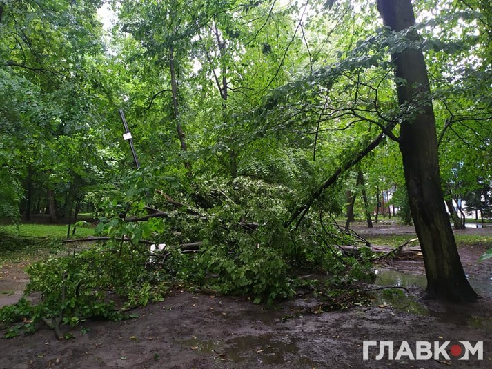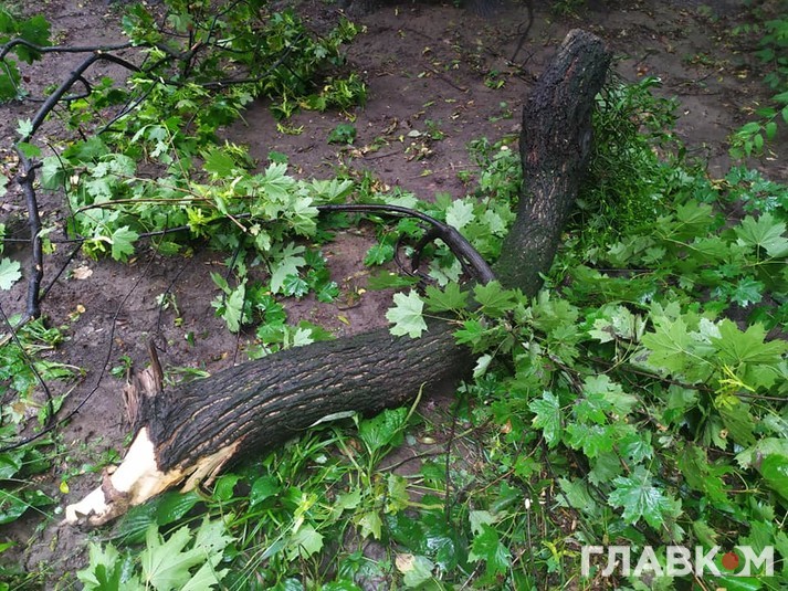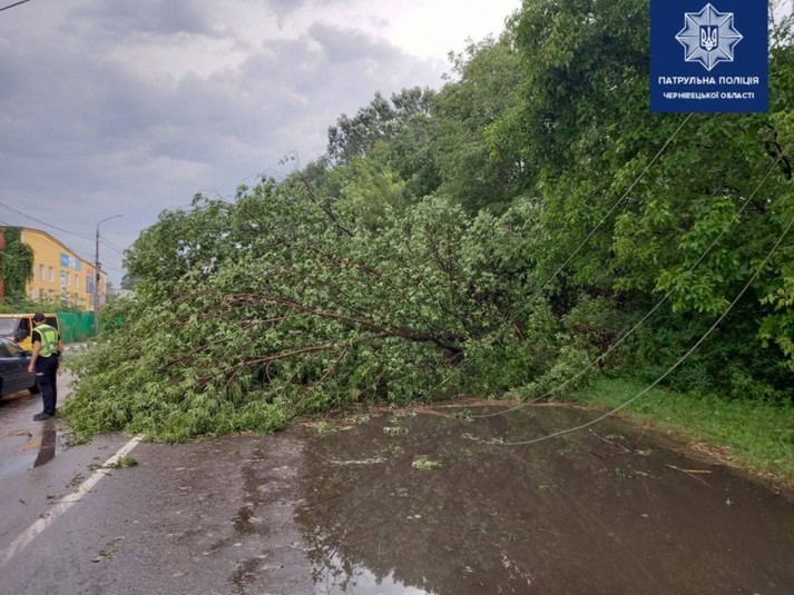 Зазначається, що на вулиці Галицький шлях через негоду впало дерево. Воно перекрило проїжджу частину і обірвало мережі електропередач.