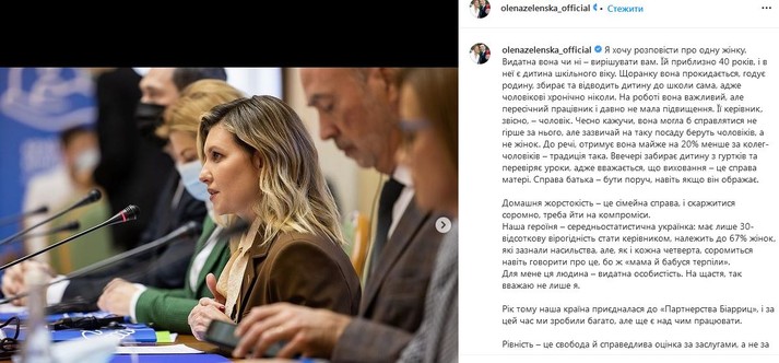 Зеленська: «Наша героїня – середньостатистична українка: має лише 30-відсоткову вірогідність стати керівником»