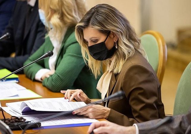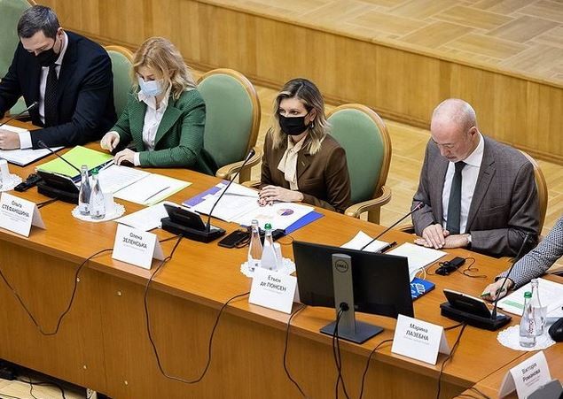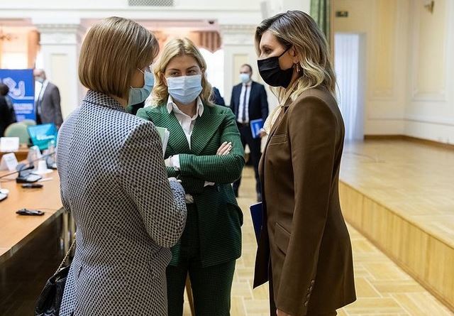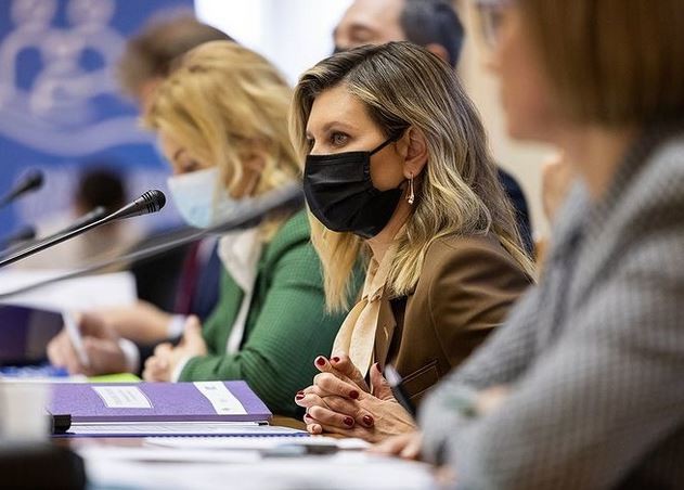 До слова, для зустрічі Зеленська знову обрала костюм у коричневих відтінках та поєднала його з бежевою блузкою.