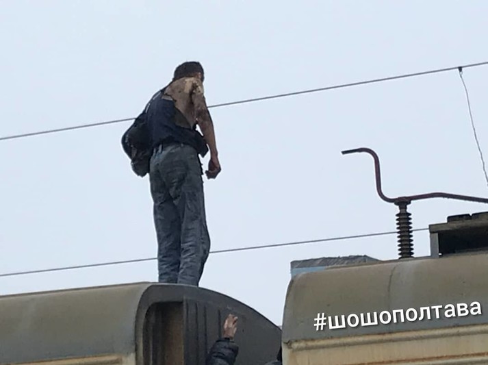 У Полтаві невідомий чоловік вижив після удару електричним струмом у 27 тисяч вольт на даху електропоїзда. Про це інформує місцевий паблік.