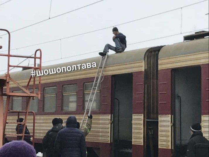 «Сьогодні вранці 25 листопада на станції Полтава - Південна невідомий чоловік заліз на дах електропоїзда , його вразило струмом, внаслідок чого він отримав опіки. Нагадуємо, що в контактній мережі напруга 27 тис. вольт», - сказано у повідомленні.