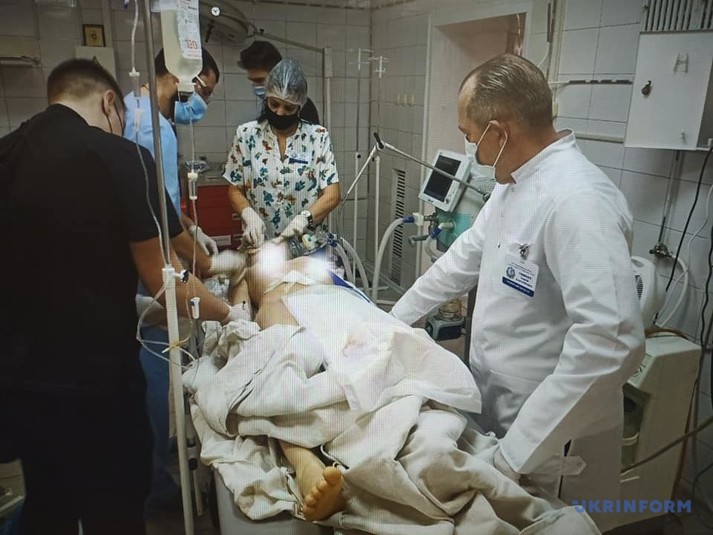 «Коли приїхав сюди у приймальне відділення, тут уже було троє з пораненнями живота. У найбільш важкому стані хлопець, його звуть Ігор. 25 років. У нього важке поранення живота. Десь літр крові в черевній порожнині. Його відразу після комп'ютерного томографа взяли в операційну. Він залишається важким і зараз перебуває у відділенні реанімації політравми. Йому надають допомогу, прийшов до тями», – уточнив Риженко.