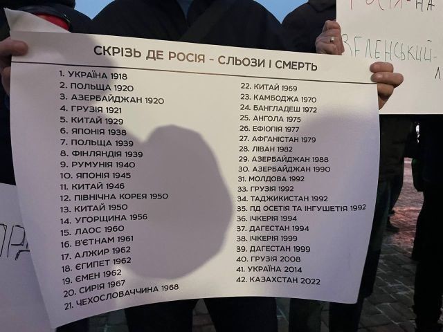 На думку мітингарів, події у Казахстані, влада якої звернулася до Організації договору колективної безпеки – черговий пункт плану у відновленні Путіним СРСР. Активісти вимагають від української влади висловити свою позицію щодо подій у Казахстані.