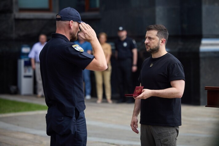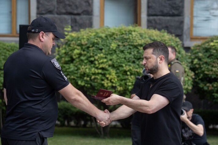 Зеленський вручив поліцейським державні нагороди та спеціальні звання.