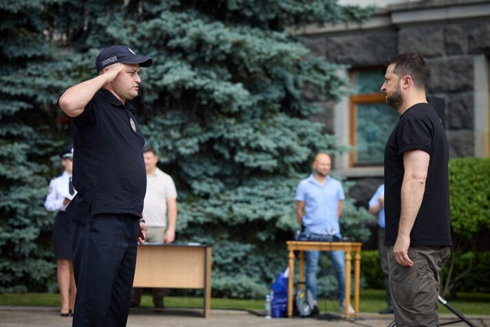 Глава держави наголосив, що сьогодні, в часи повномасштабного російського вторгнення, працівники Національної поліції нарівні з іншими силами безпеки та оборони захищають нашу державу на передовій.