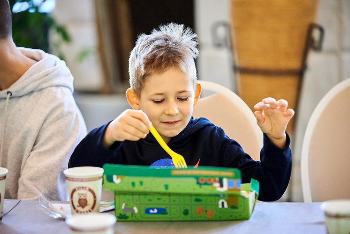 50 дітей віком від 5 до 15 років, що були зареєстровані для участі своїми батьками, допомогли обрати оптимальний варіант ланчбоксу та оцінити його складові: омлет із дитячими міні-сосисками, сиром «чеддер» і зеленим горошком, кукурудзу у вершковому соусі та шарлотку з яблуками.