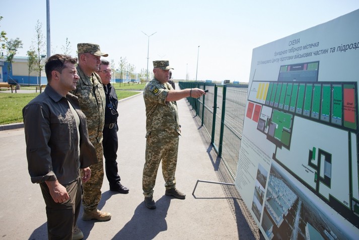 Після цього Зеленський ознайомився з новозбудованими інфраструктурними об'єктами військового містечка Міжвидового центру підготовки підрозділів «Широкий лан». Військове містечко споруджене за стандартами НАТО та розраховане на 2500 осіб. Зокрема, президент оглянув казарму, спортивний майданчик та їдальню.