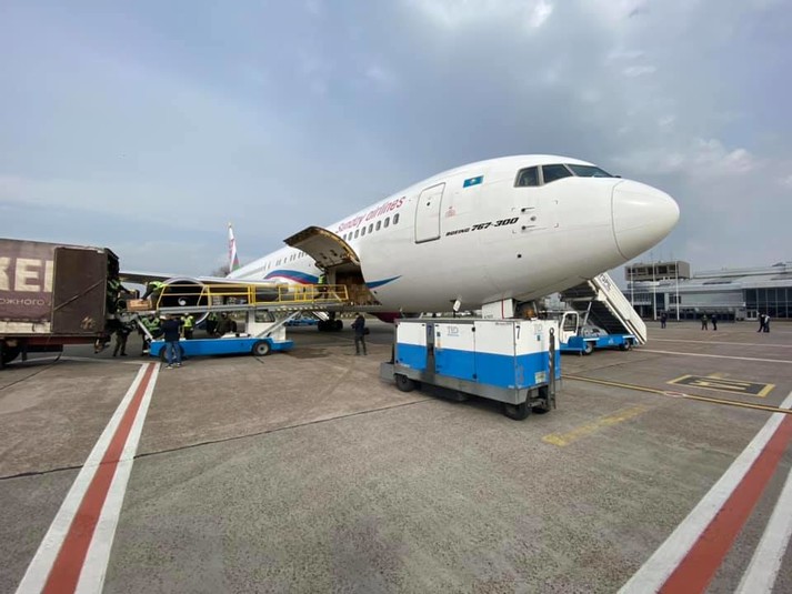Другий літак з Китаю із засобами захисту для лікарів, поліції, військових вже у Борисполі. Літак завантажений черговою партією медичних масок, захисних костюмів та інших протиепідемічних засобів для України.
