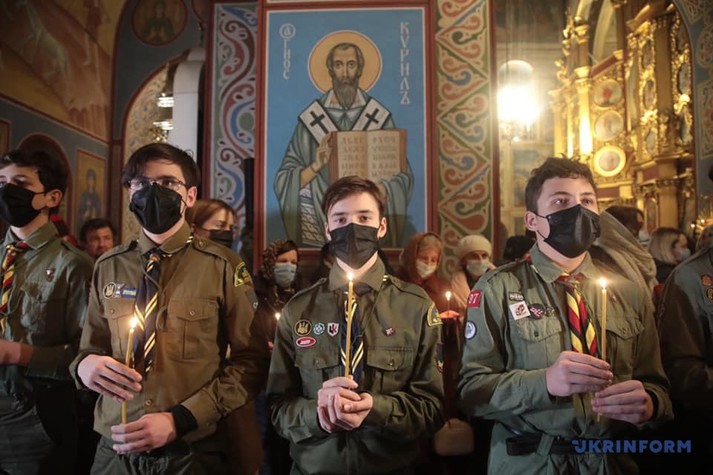 Після церемонії у храмі українські пластуни вирушили до 22-х обласних центрів України, а також до трьох міст на сході (Костянтинівки, Лисичанська та Маріуполя), щоб передати Вифлеємський вогонь.