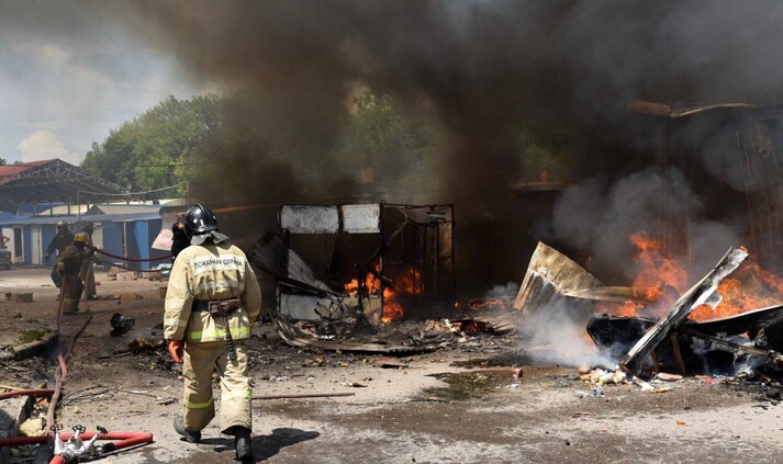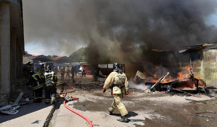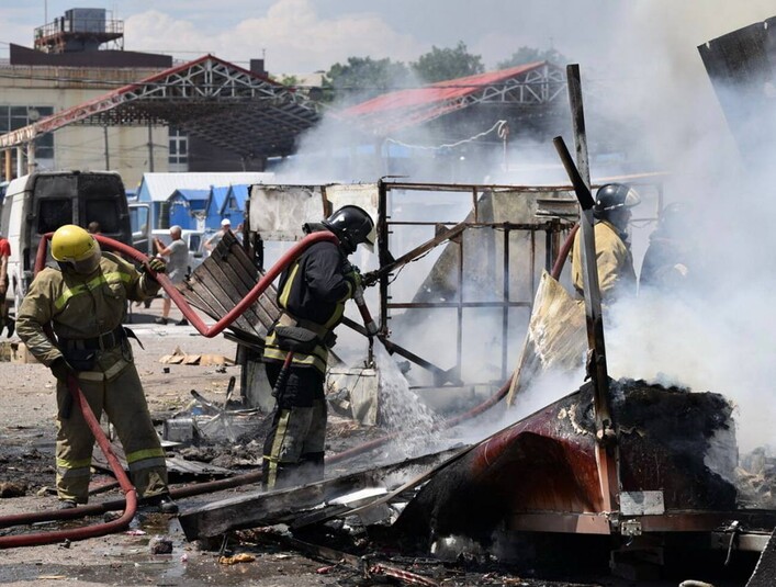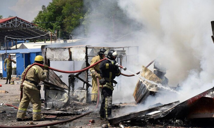 Після обстрілу на ринку почалася пожежа.