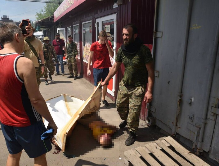 У Донецьку був обстріляний ринок у Будьоннівському районі. Російські пропагандисти написали про «обстріл центру Донецька», але Травневий ринок розташований на східній околиці міста, з протилежного боку від позицій українських військ.