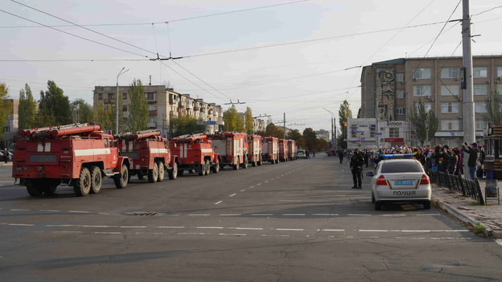Зазначається, що регіон покинули рятувальники з Донецької, Дніпропетровської, Запорізької, Полтавської та Харківської областей. У зв’язку з цим на площі Сєвєродонецька вишукувалася колона з пожежних автомобілів.