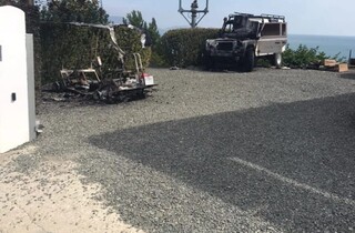 Згоріли «Ленд Ровер Фрілендер» та гольф-кар путінського пропагандиста