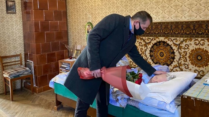 Старенька жінка лежала в ліжку із заплющеними очима, а мер Дрогобича торкався її обличчя