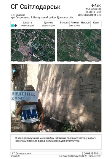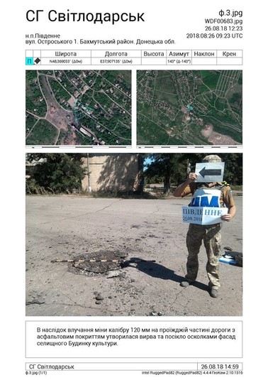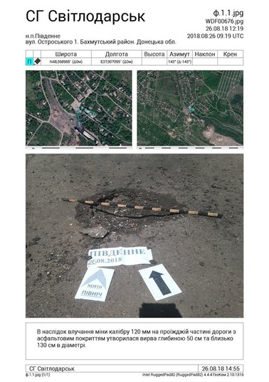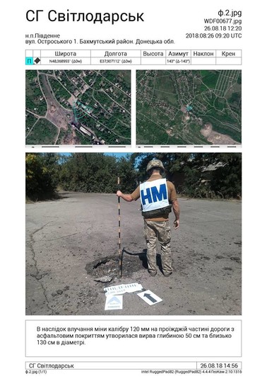Вогонь вівся у напрямку Горлівка – Південне. Причому, відстань від місця влучання міни до найближчих позицій Збройних сил України становить близько 1 км. Що прямо свідчить про навмисний обстріл бойовиками мирного населення, зазначається у повідомленні.