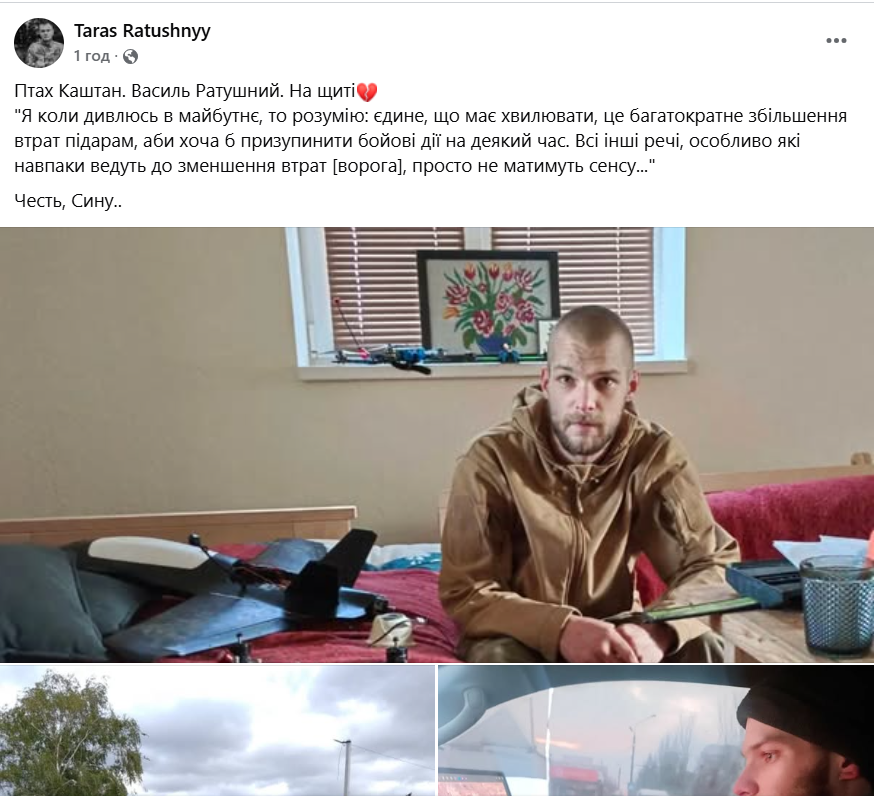 «Старший син Василь, його брат, ішов тим шляхом, будучи старшим на рік з невеликим, – казав Тарас Ратушний на YouTube-каналі «Ми – Україна». – Колом знайомих була 93-тя бригада, вони всі туди вступили і воювали».