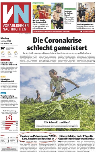 Vorarlberger Nachrichten: «НАТО: фіни йдуть першими, Швеція слідує за ними». Це був історичний день, заявив у неділю президент Фінляндії Саулі Нііністе. Незадовго до цього він та прем'єр-міністр Санна Марін оголосили, що Фінляндія хоче стати членом НАТО. Тепер на цей крок має дати згоду лише фінський парламент.