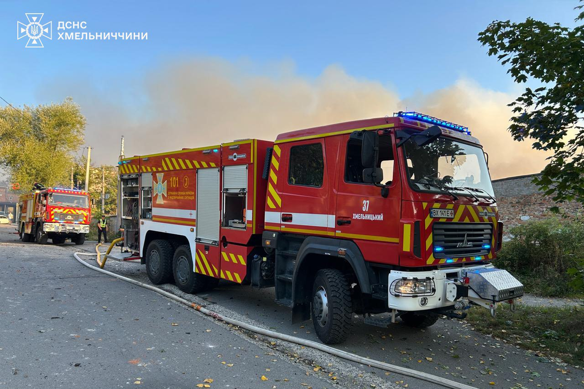 На Хмельниччині рятувальники локалізували пожежу, яка винивкла внаслідок російських ударів на території гаражного комплексу.