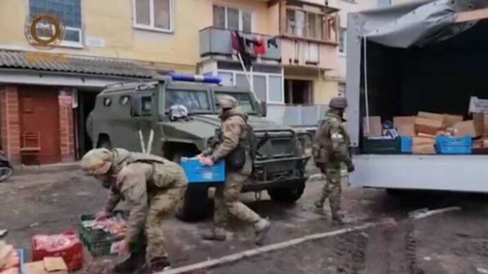 Кадирівці нахабно роздають в Україні як гуманітарку викрадені продукти (фото)
