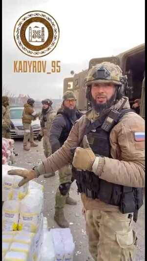 Бійці Рамзана Кадирова, які воюють проти України, роздають як гуманітарну допомогу продукти, викрадені в українських магазинах або із захоплених ними гуманітарних колон. Про це свідчать відео з каналу Кадирова.