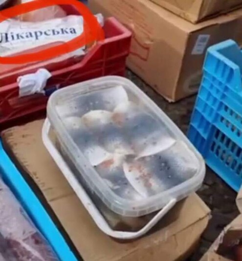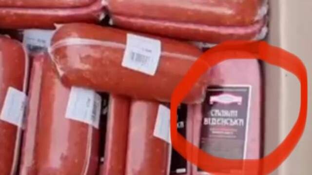На скріншотах із відео чітко видно назви на продуктах українською мовою: «Борошно» та назви ковбасних виробів – «Віденський сервілат» та «Лікарська».