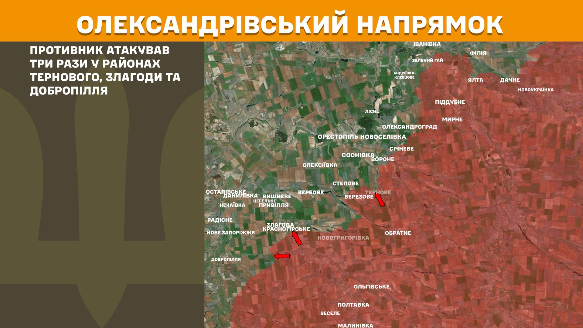 Противник атакував три рази у районах Тернового, Злагоди та Добропілля.