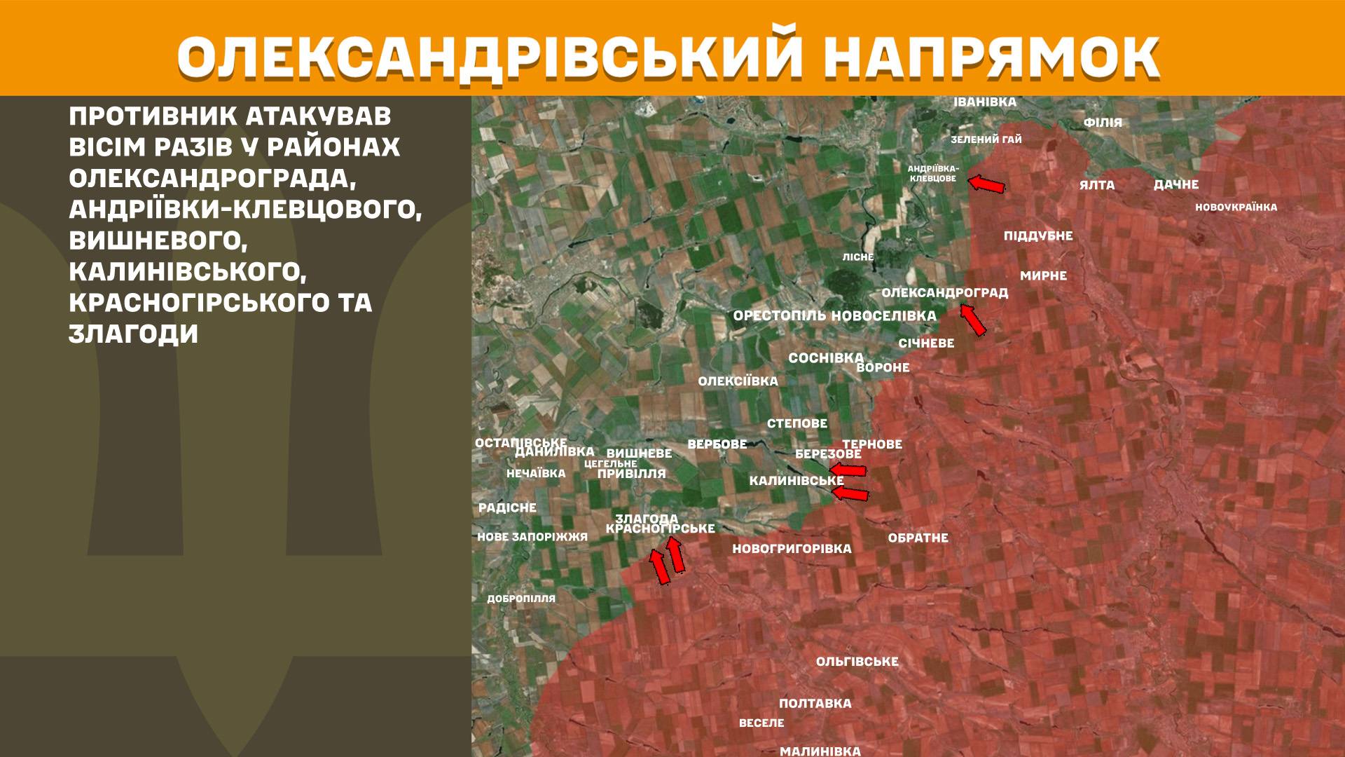 Противник атакував вісім разів у районах Олександрограда, Андріївки-Клевцового, Вишневого, Калинівського, Красногірського та Злагоди.