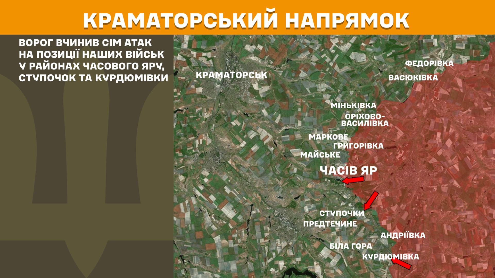 Ворог вчинив сім атак на позиції наших військ у районах Часового Яру, Ступочок та Курдюмівки.