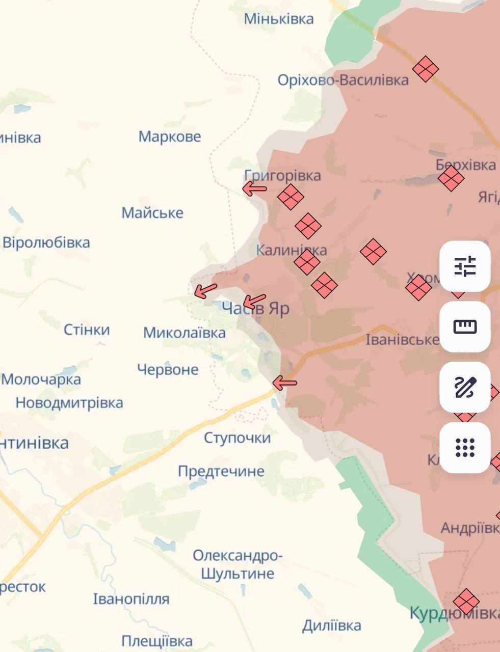 Сили оборони зупинили чотири ворожі спроби просунутися вперед поблизу Часового Яру, Предтечиного та Білої Гори.