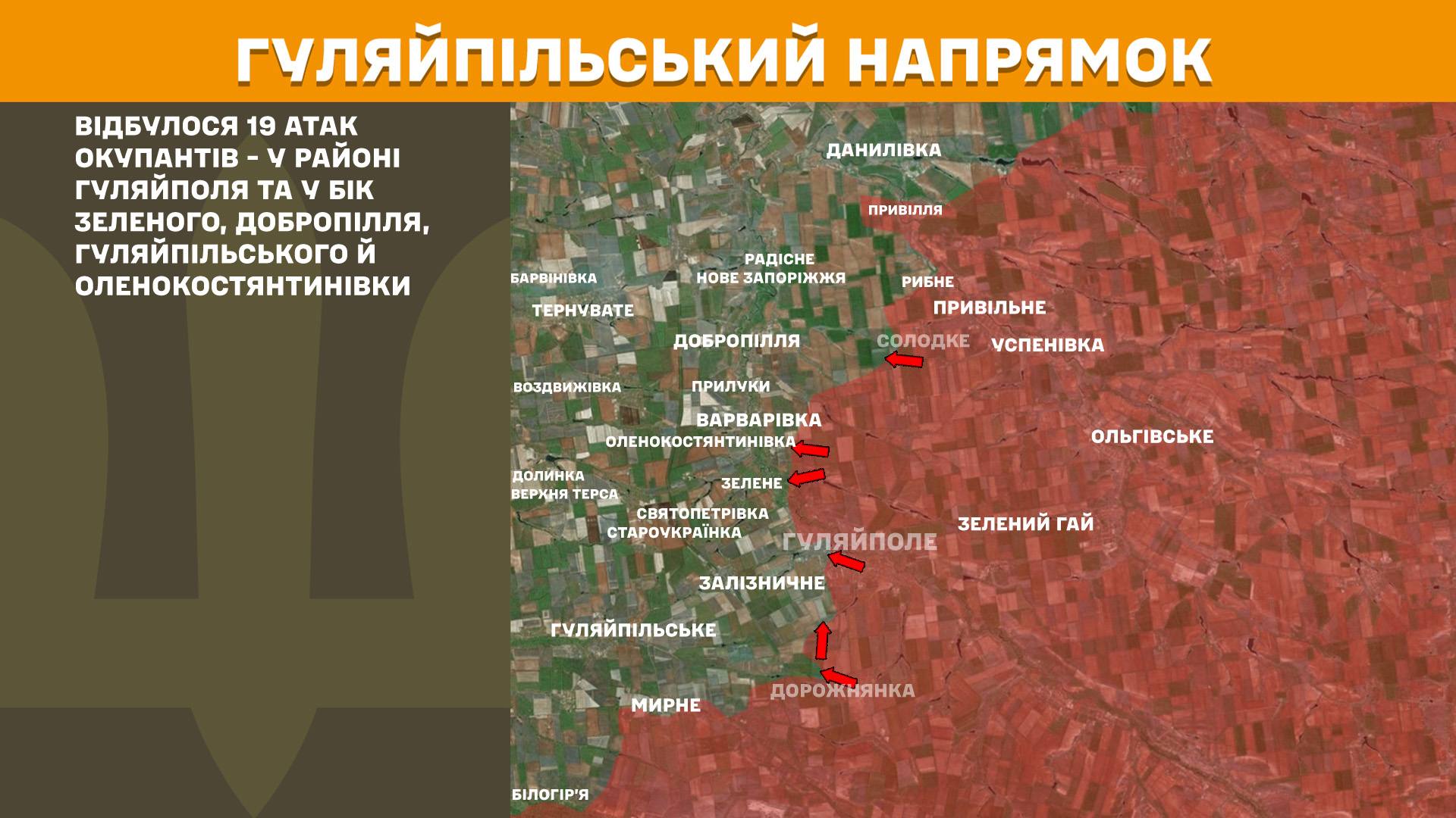 Відбулося 19 атак окупантів - у районі Гуляйполя та у бік Зеленого, Добропілля, Гуляйпільського й Оленокостянтинівки.