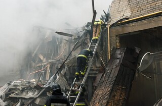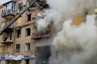 «Одна з ракет влучила у дах п'ятиповерхового житлового будинку, вщент зруйнувавши три поверхи. Наразі тривають роботи з розбирання завалів. На щастя більшість мешканців цього будинку були відселені», – йдеться в повідомленні.