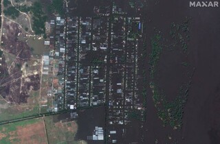 Села Херсонської області після затоплення через підрив Каховської дамби опинилися повністю під водою. Про це свідчать нові супутникові знімки, оприлюднені Мaxar.